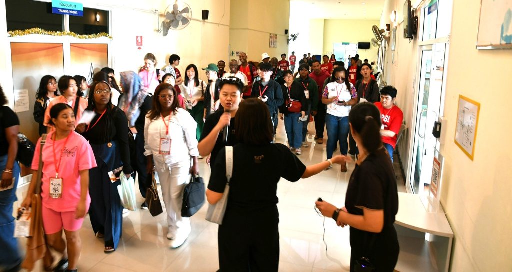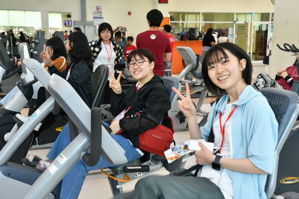 มีนักศึกษาจากประเทศต่างๆ รวม 80 คน ศึกษาระบบบริการต่างๆ ของสถานกีฬาและสุขภาพ ทดลองใช้เครื่องมือในห้องออกกำลังกาย และเรียนรู้ศิลปมวยไทย ณ อาคารกิจกรรมนักศึกษาและกีฬาสุรเริงไชย